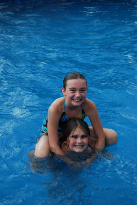 Saturday, the guys took Joy trout fishing, but she came home a little disappointed. There were so many canoers (partying canoers unfortunately), that the fish weren't biting. The place was just too busy. My daddy did catch one fish. She still was able to do a little "playing" in the river though.